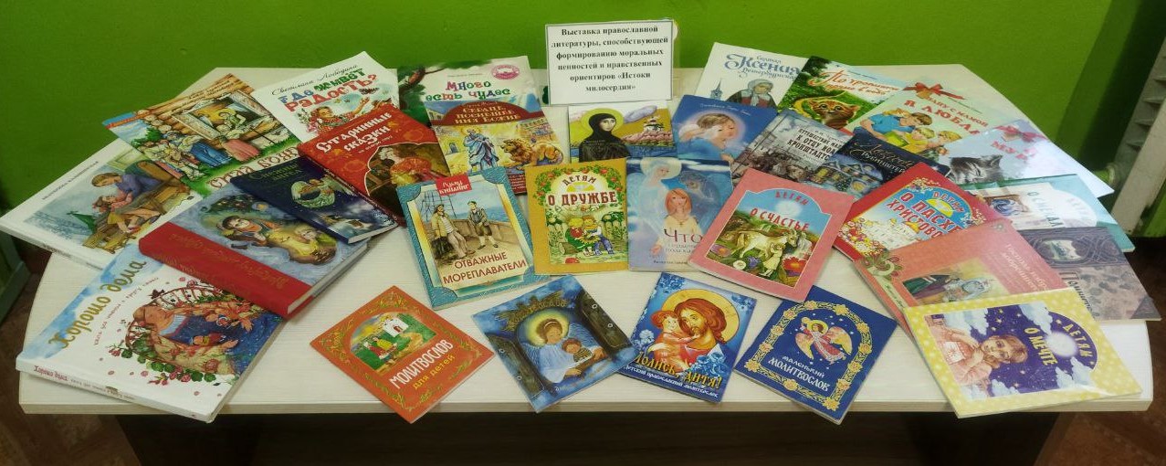- в государственном учреждении образования «Детский сад № 5 г. Любани» организована мини-выставка «Истоки милосердия» православной литературы, способствующая формированию моральных ценностей и нравственных ориентиров у несовершеннолетних и их родителей;