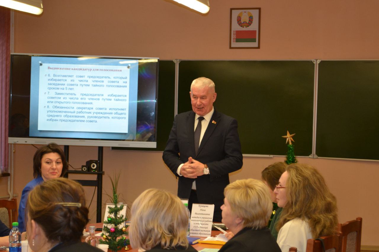 С приветственным словом к членам совета обратился начальник главного управления по образованию Минского областного исполнительного комитета Николай Николаевич Башко, который акцентировал внимание присутствующих на важности решения поставленных перед советом задач.