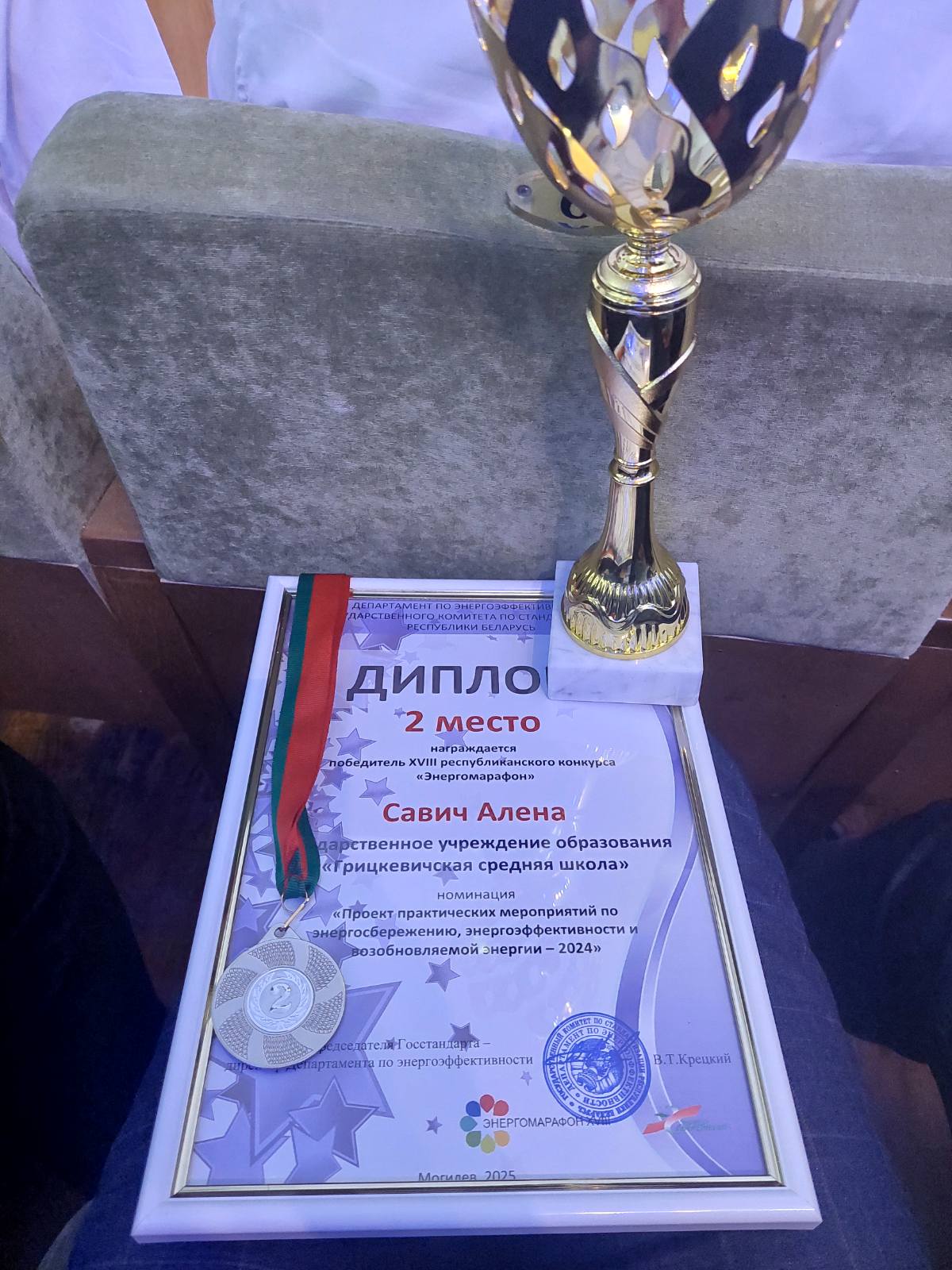 дипломом II степени в номинации «Проект практических мероприятий по энергосбережению, энергоэффективности и возобновляемой энергии» за проект «Отходы ОАО «Беларуськалий» – потенциальное сырье для производства водорода как самого чистого вида энергии» награждены Кобяк Владислав, Савич Алена, учащиеся ГУО «Грицкевичская средняя школа» Несвижского района, руководитель Радоман Андрей Станиславович, учитель биологии и химии;