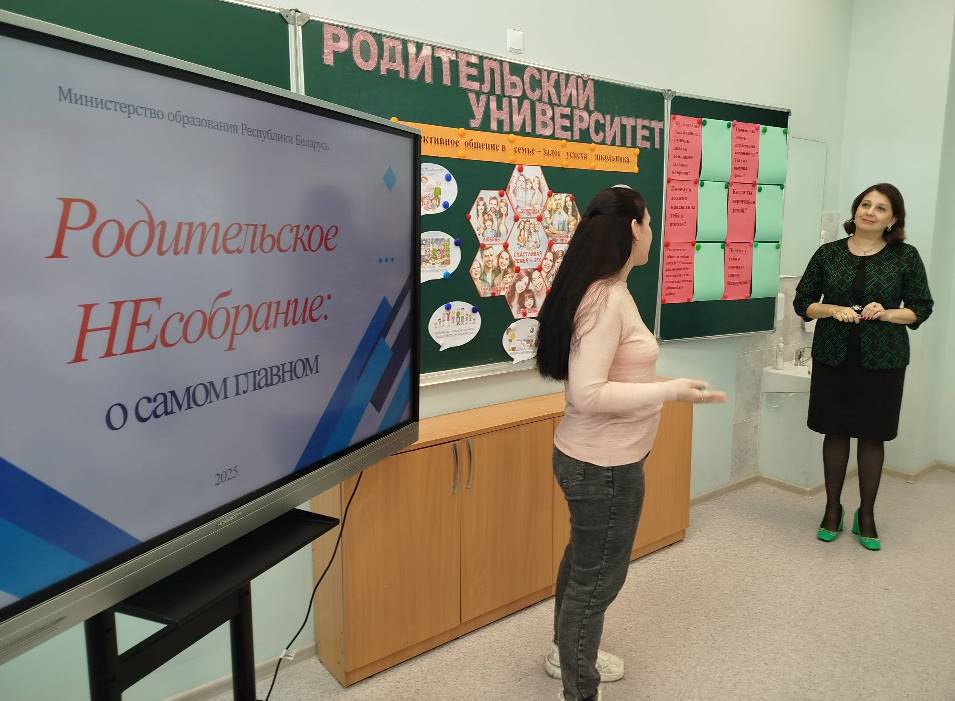 В гимназии г. Мяделя заместители директора по воспитательной (учебно-воспитательной) работе, методисты районного учебно-методического кабинета обсудили одну из самых важных тем в работе педагога – воспитание детей через сотрудничество семьи и школы. Педагоги посетили мастер-класс по проведению родительского университета. В итоге педагоги сошлись во мнении: формула «школа + семья = успех» – это не просто красивый лозунг – это реально работающая модель. А успех – счастливый ребенок, который растет в атмосфере доверия, уважения и поддержки.