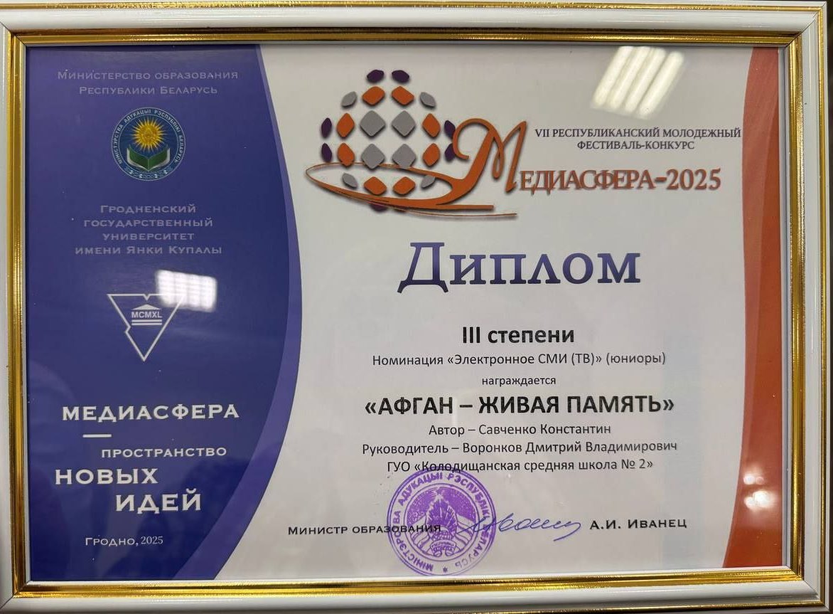 Дипломом III степени награжден Савченко Константин, учащийся Колодищанской средней школы № 2 Минского района.