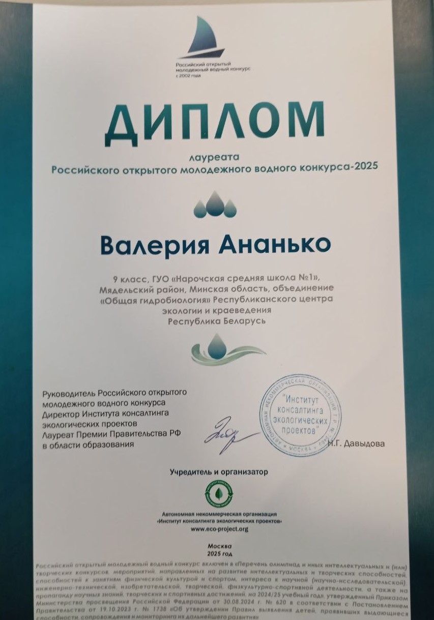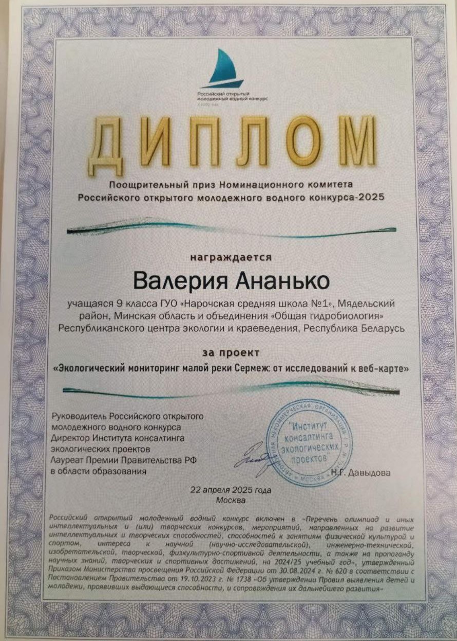 Республику Беларусь представила Ананько Валерия, учащаяся Нарочской средней школы № 1 Мядельского района, с исследовательской работой «Экологический мониторинг малой реки Сермеж: от исследований к веб-карте».