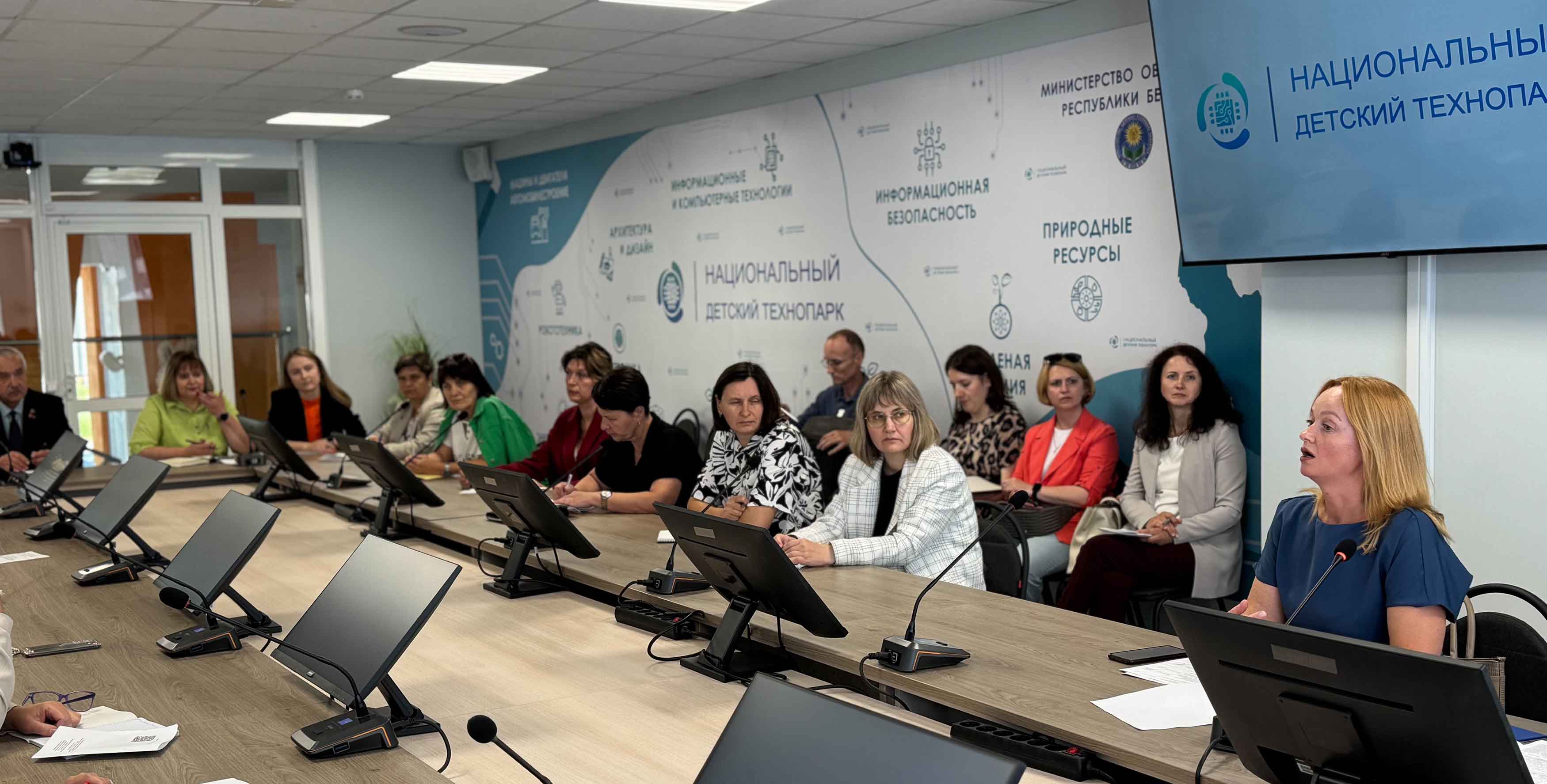Важным моментом диалоговой площадки стал круглый стол, посвященный вопросам подготовки учащихся к поступлению в Национальный детский технопарк. На актуальные вопросы отвечали Шибицкая Татьяна Аркадьевна, заместитель директора по учебно-воспитательной работе, Вронко Алла Юрьевна, заведующий отделом организации отбора одаренных учащихся и формирования образовательных смен, Карпенко Инна Михайловна, заведующий отделом организации тестирования и профориентации учащихся Национального детского технопарка. Обсуждались эффективные методики выявления, развития и поддержки одаренных детей и молодежи, критерии, методики и практические аспекты отбора в Национальный детский технопарк, льготы при поступлении в учреждения высшего образования.
