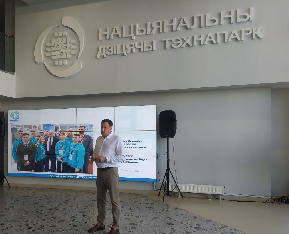С приветственным словом к участникам диалоговой площадки обратился Сачко Сергей Михайлович, директор учреждения образования «Национальный детский технопарк». В своем выступлении Сергей Михайлович рассказал о реализации программ для одаренных детей и молодежи, акцентировал внимание, что в технопарке особое внимание уделяется развитию проектного обучения, ориентированного на перспективные направления современного производства и науки, расширению взаимодействия с учреждениями высшего образования и представителями реального сектора экономики для оказания помощи в практическом применении разработок учащихся и в построении их дальнейшей профессиональной траектории.