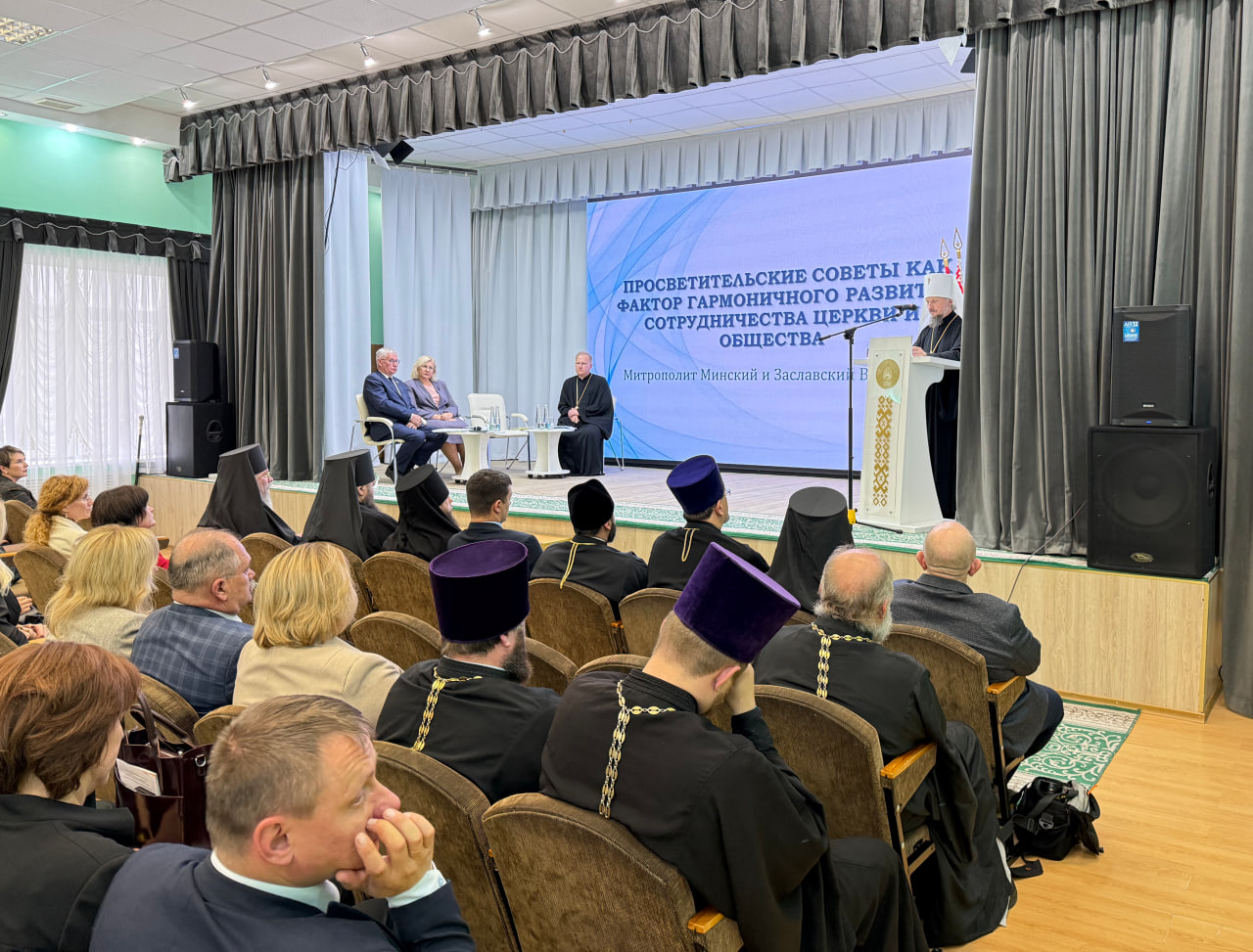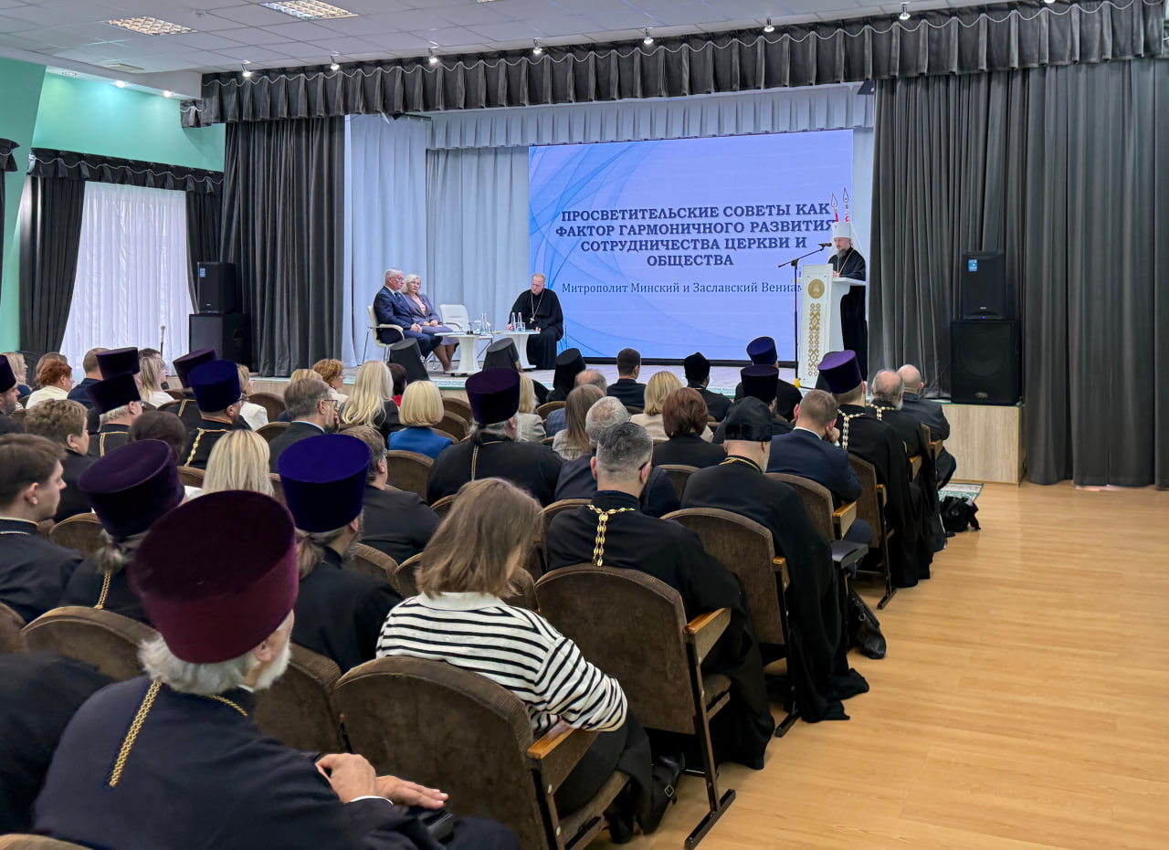 - Митрополит Минский и Заславский Вениамин раскрыл тему «Просветительские советы как фактор гармоничного развития сотрудничества Церкви и общества».
