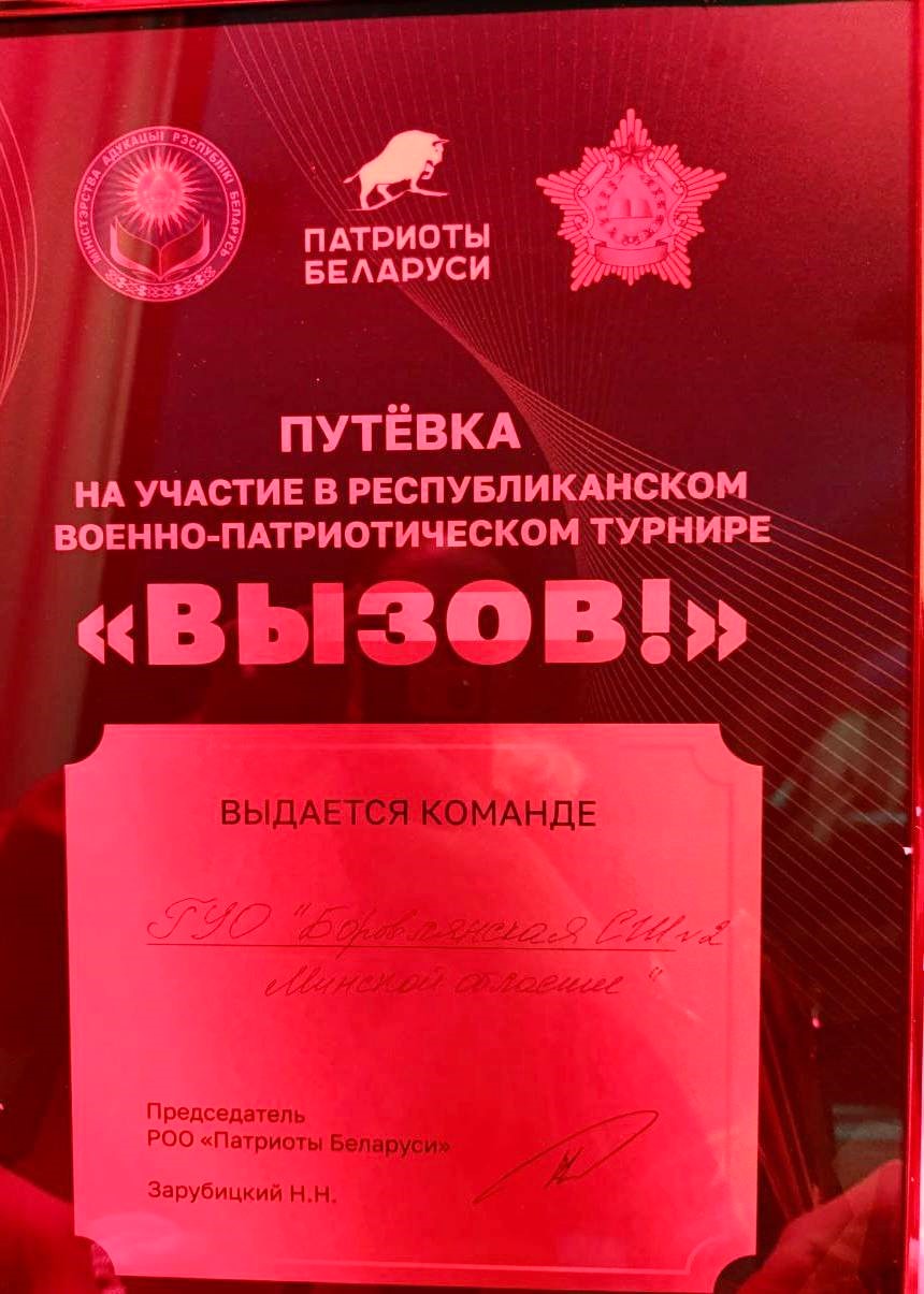 - 2 место – команда «Доблесть» ГУО «Боровлянская средняя школа № 2» Минского района, Тиунов Евгений Александрович, руководитель по военно-патриотическому воспитанию;