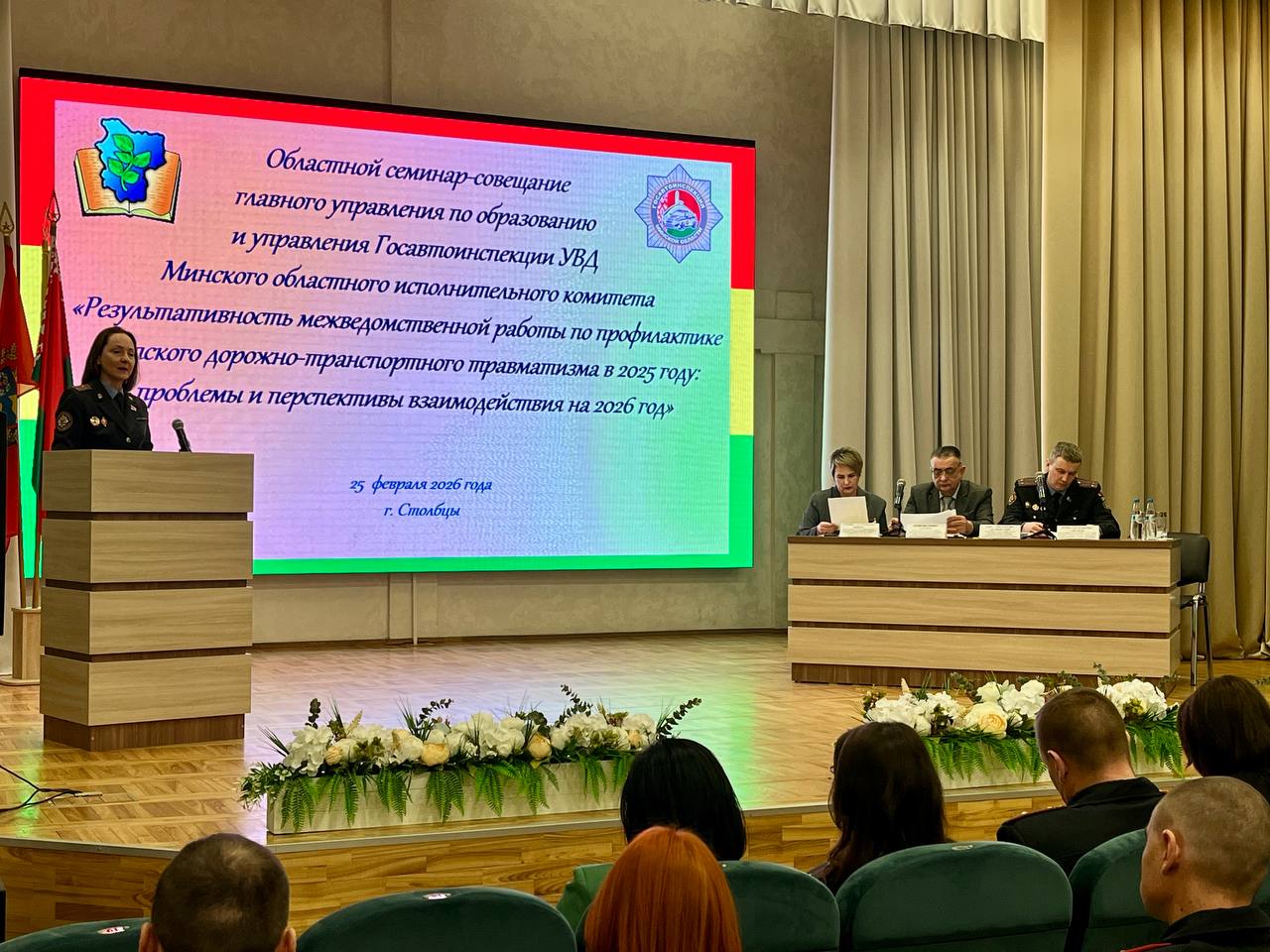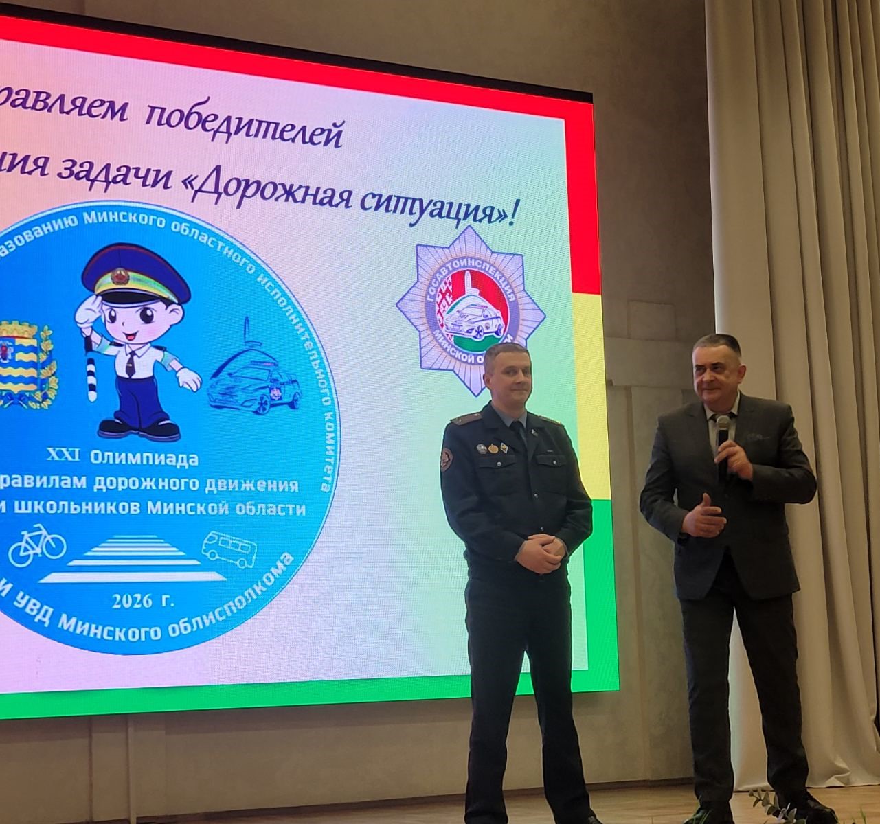 В мероприятии приняли участие заместитель начальника УГАИ УВД Минского облисполкома, подполковник милиции Адамовский Олег Григорьевич, заместитель начальника главного управления по образованию Минского облисполкома Юрий Иванович Ларичев, начальник отдела социальной и воспитательной работы главного управления по образованию облисполкома Татьяна Анатольевна Цвирко.