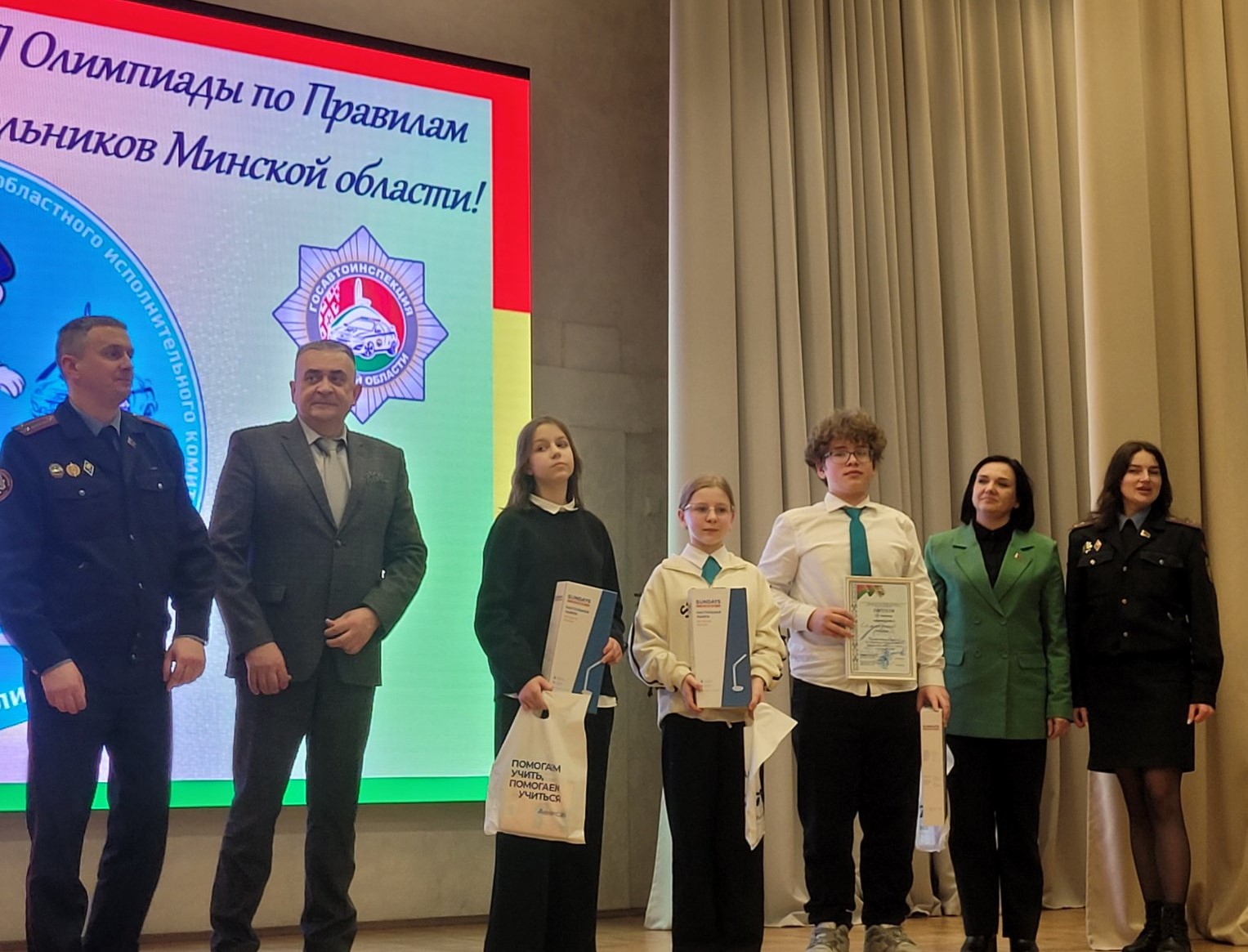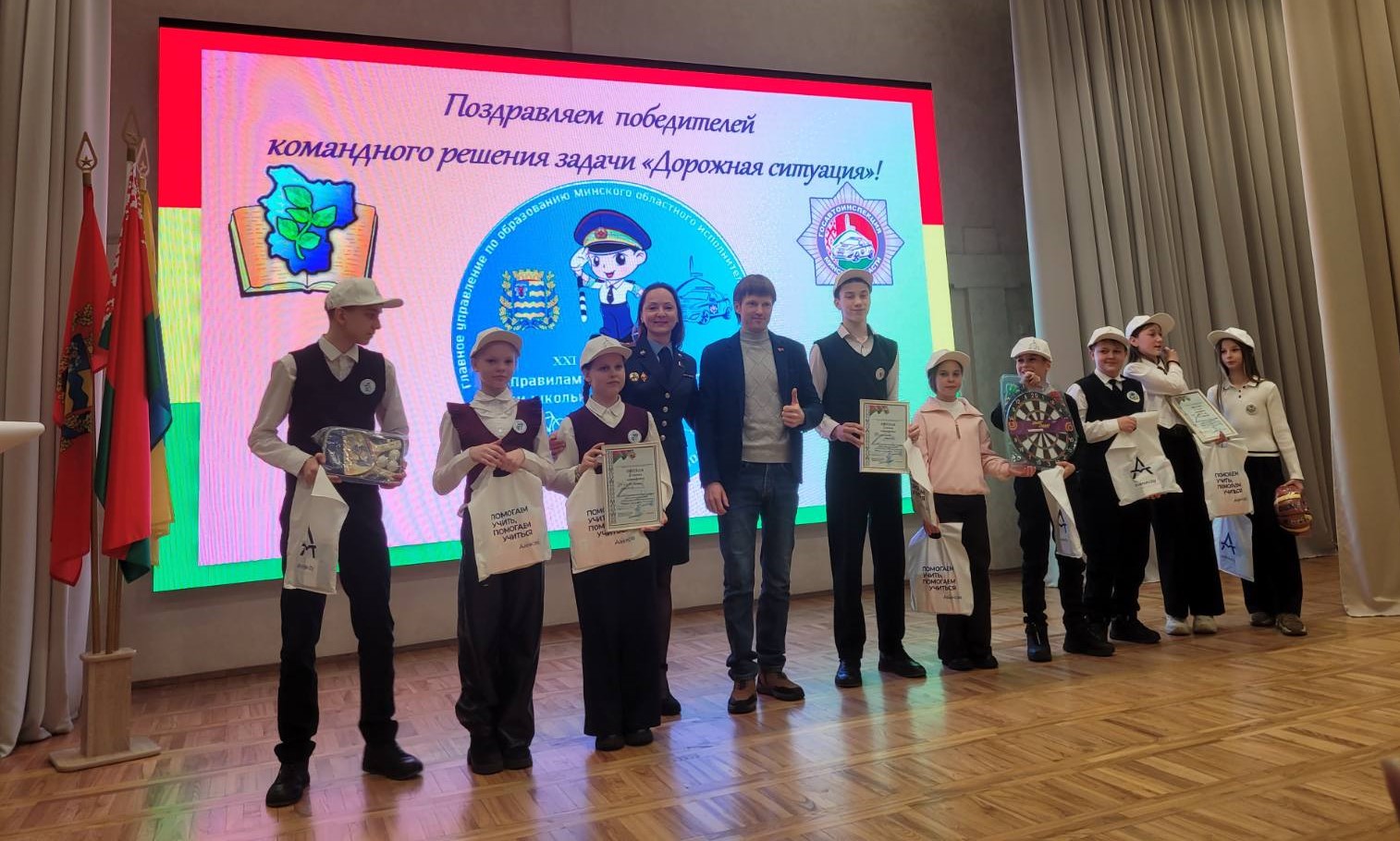 Победителями в творческом конкурсе «#вместе_за_безопасность_на дорогах» являются команды Грозовской средней школы Копыльского района, гимназии № 1 г. Борисова, Пуховичской средней школы имени А. Ф. Смеяновича, Грицкевичской средней школы Несвижского района, Ждановичской средней школы Минского района, Валевачевской средней школы Червенского района.