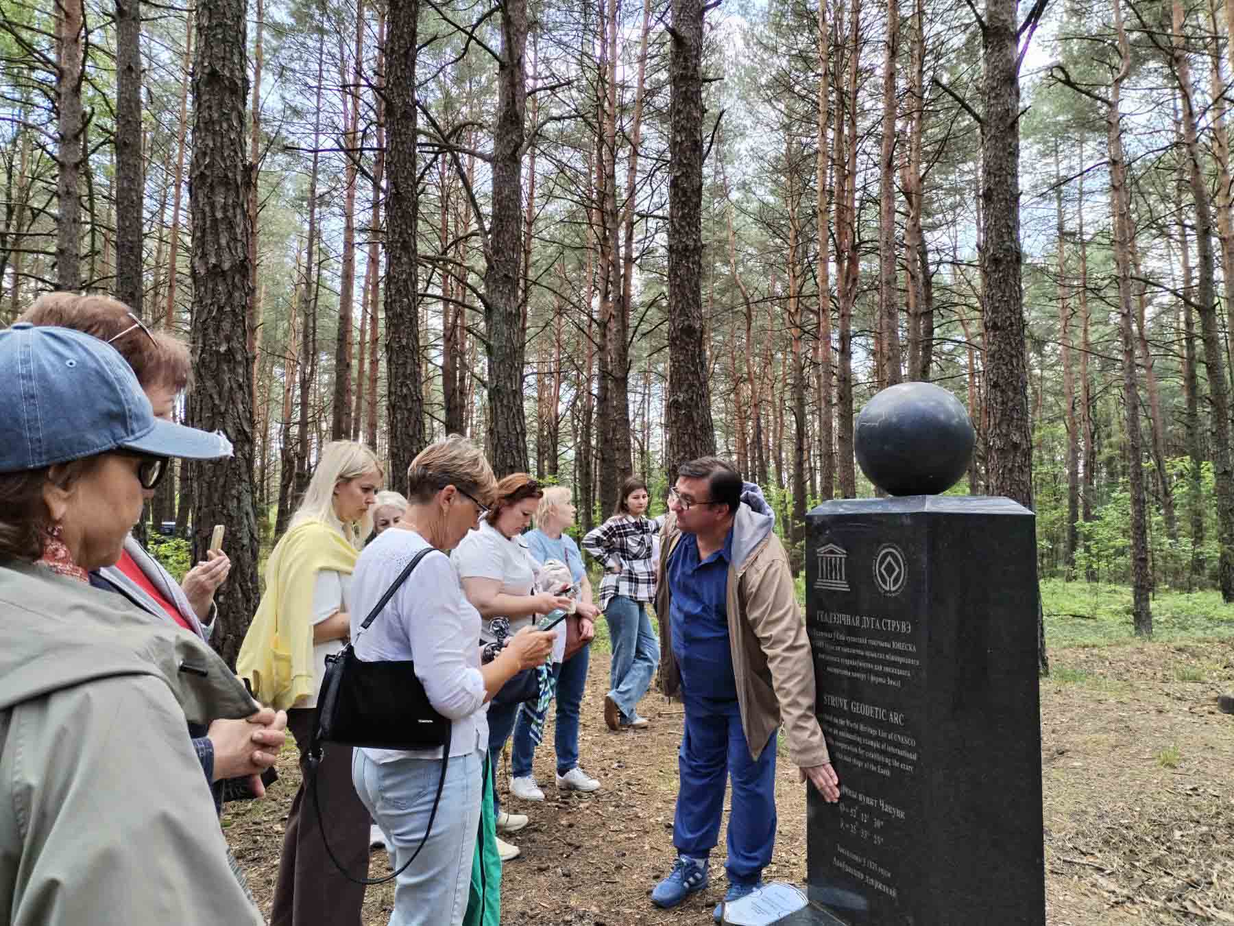 Далее маршрут пролегал по живописной лесной тропе в Щекотске, ведущей к геодезическому пункту Дуги Струве – объекту Всемирного наследия ЮНЕСКО и символу научного прогресса XIX века.