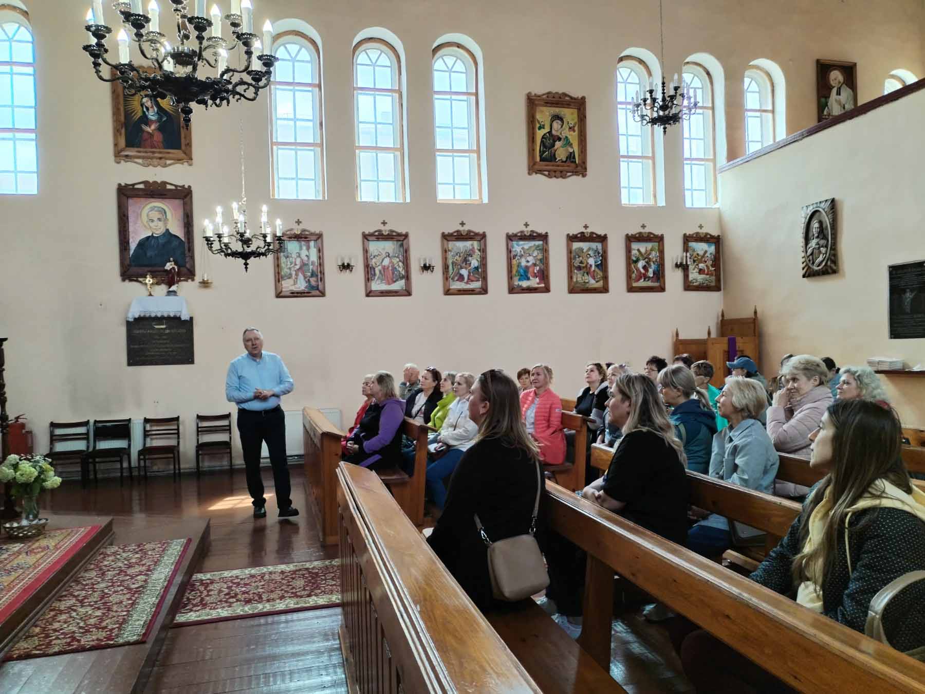 Путешествие началось с обзорной экскурсии по Иваново, где участники познакомились с историей города и его архитектурным наследием. Особое впечатление произвело посещение Крестовоздвиженского костела – святыни, где по преданию крестили маленького Наполеона Орду, известного белорусского художника и композитора.